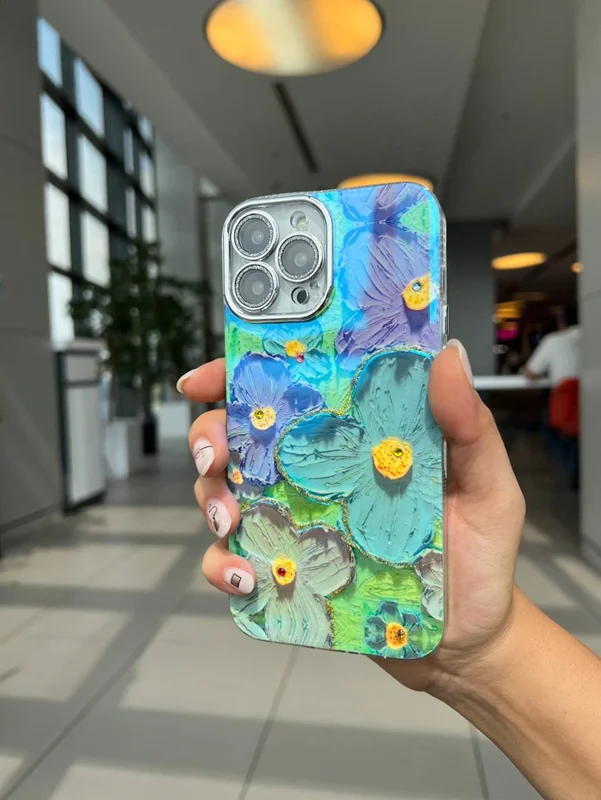 کاور آیفون گل آبرنگی زمینه آبی