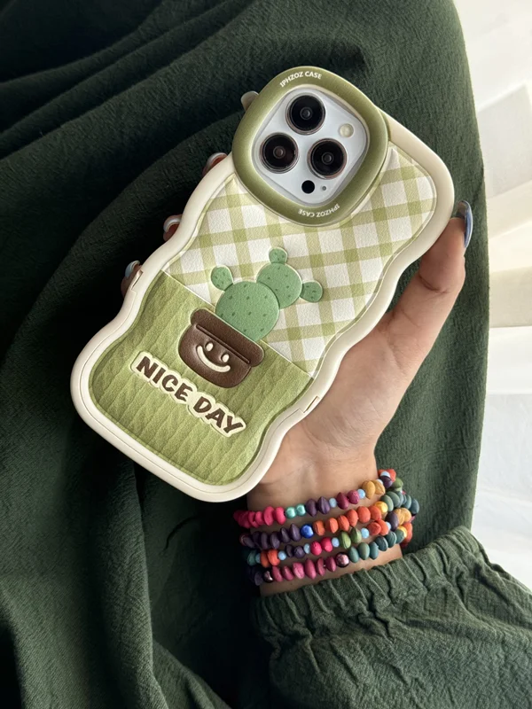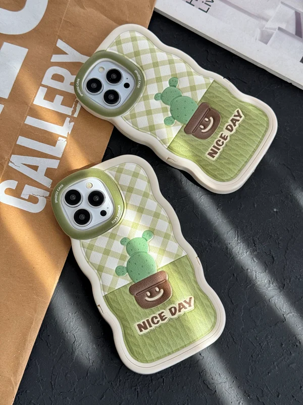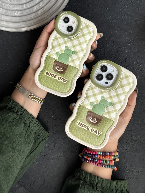 قاب موبایل آیفون کاکتوس سبز روز خوب پایه استندشو