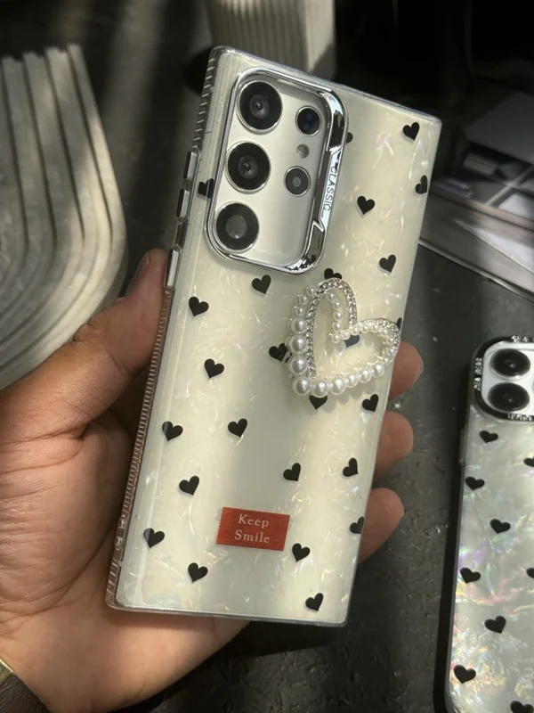 قاب موبایل سامسونگ قلب ریز خال خالی صدفی