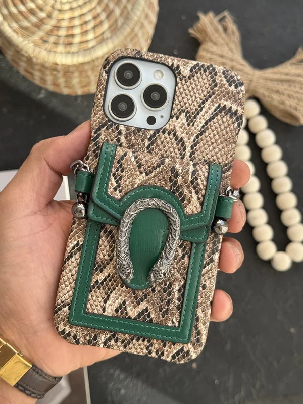 کاور گوشی آیفون پوست ماری پایتون جاکارتی و بند بلند