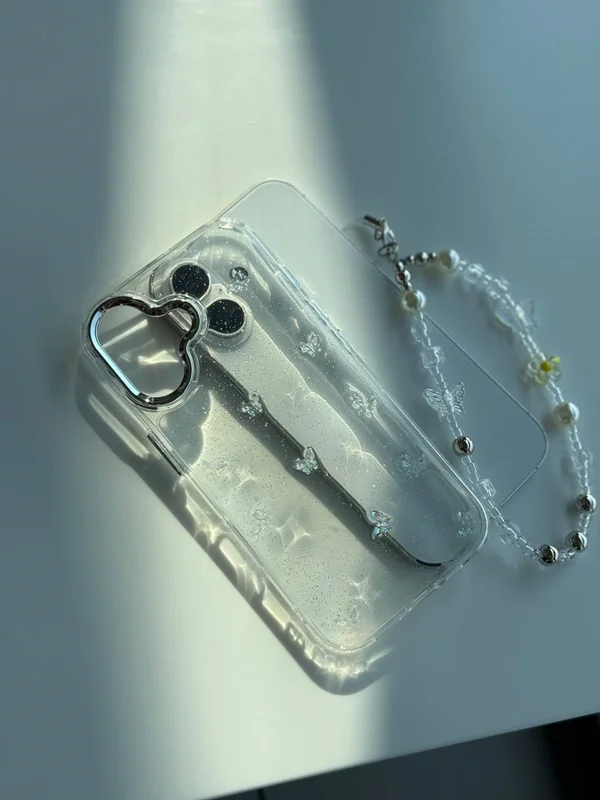 قاب موبایل آیفون پروانه ریزه شفاف همراه با بند آویز