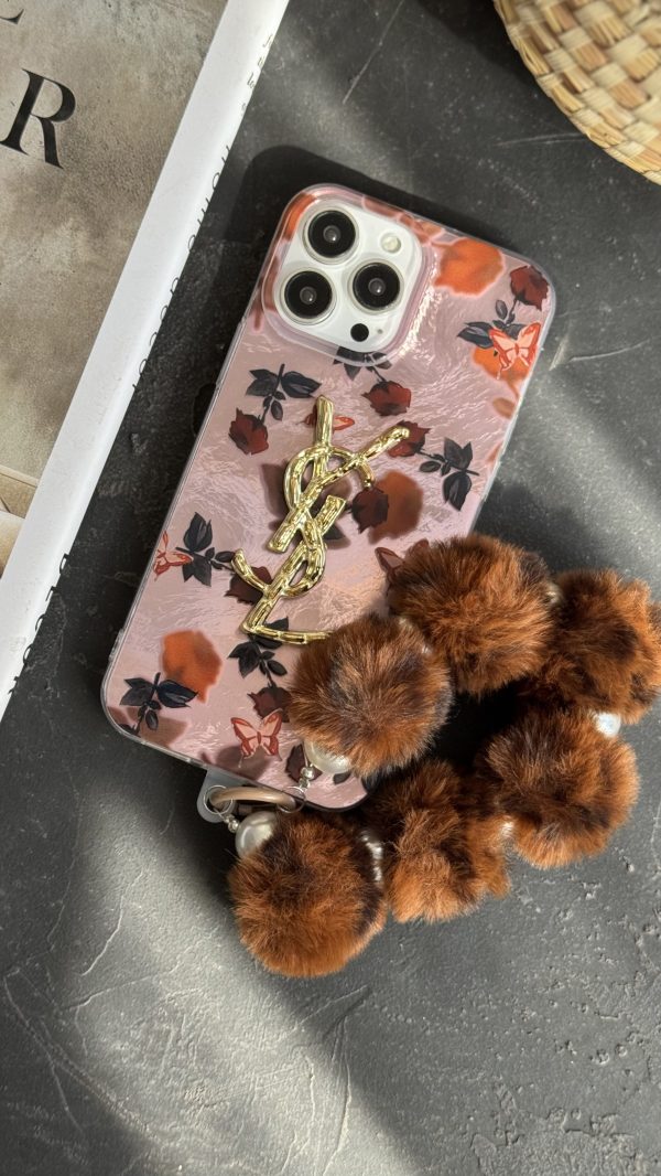 گارد آیفون سن لورن دم روباهی پروانه گل سرخ + بندست پشمی