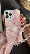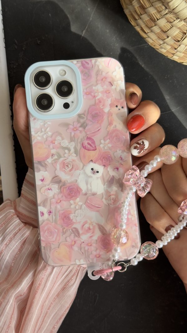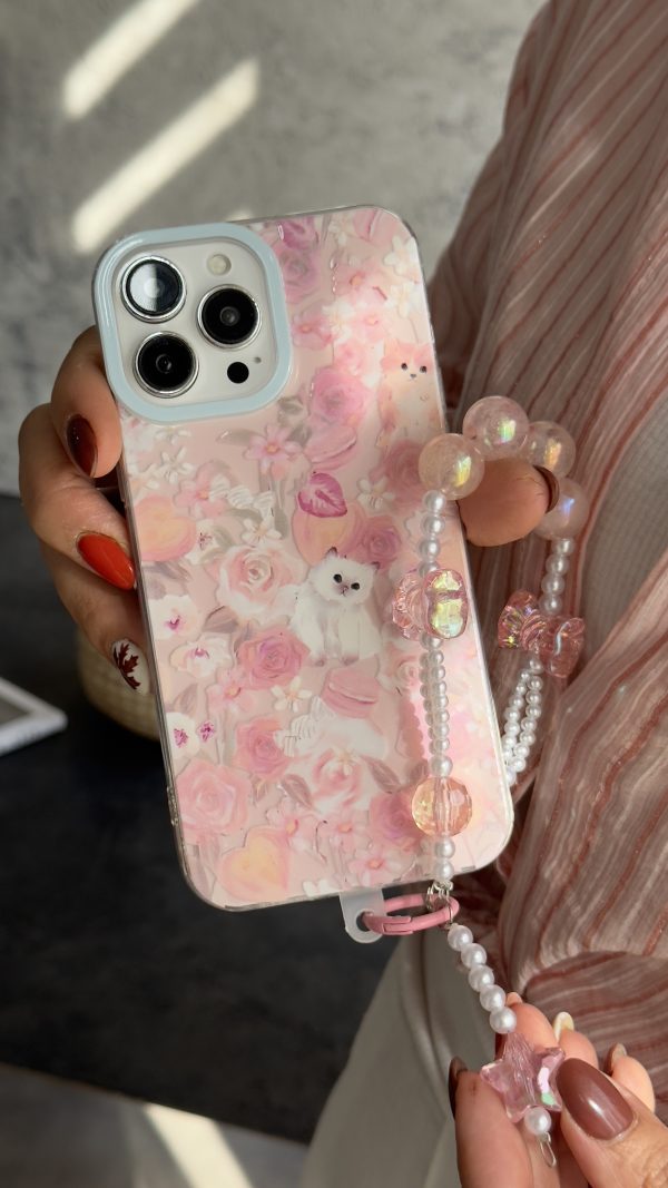 قاب موبایل آیفون کت گاردن گربه سفید صورتی + بندست