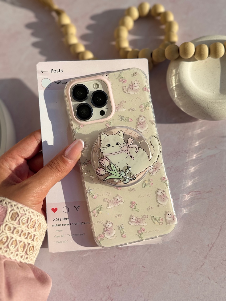 قاب موبایل آیفون گربه بازیگوش با پاپ سوکت مگنتی