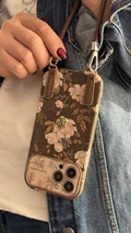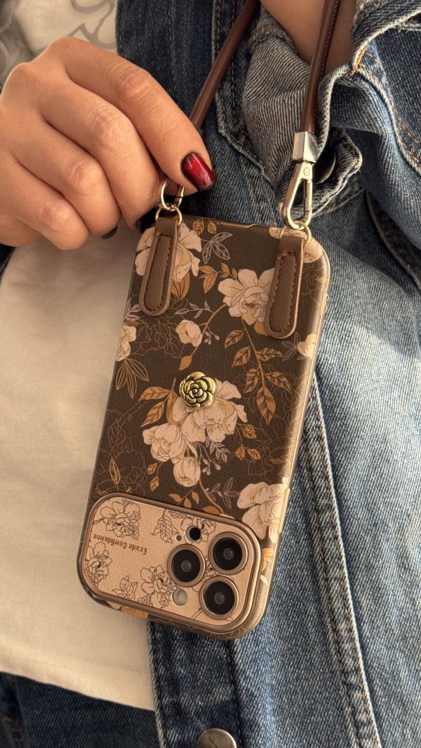 کاور آیفون گل فلاور کرم فندقی + بند چرمی ست