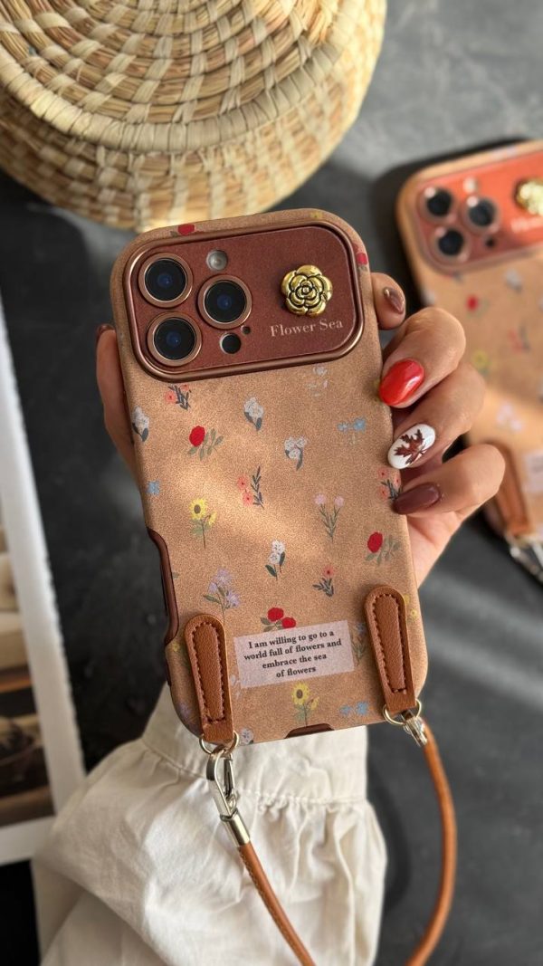 کاور آیفون گل دریایی جیر سنگشور قهوه ای + بند ست